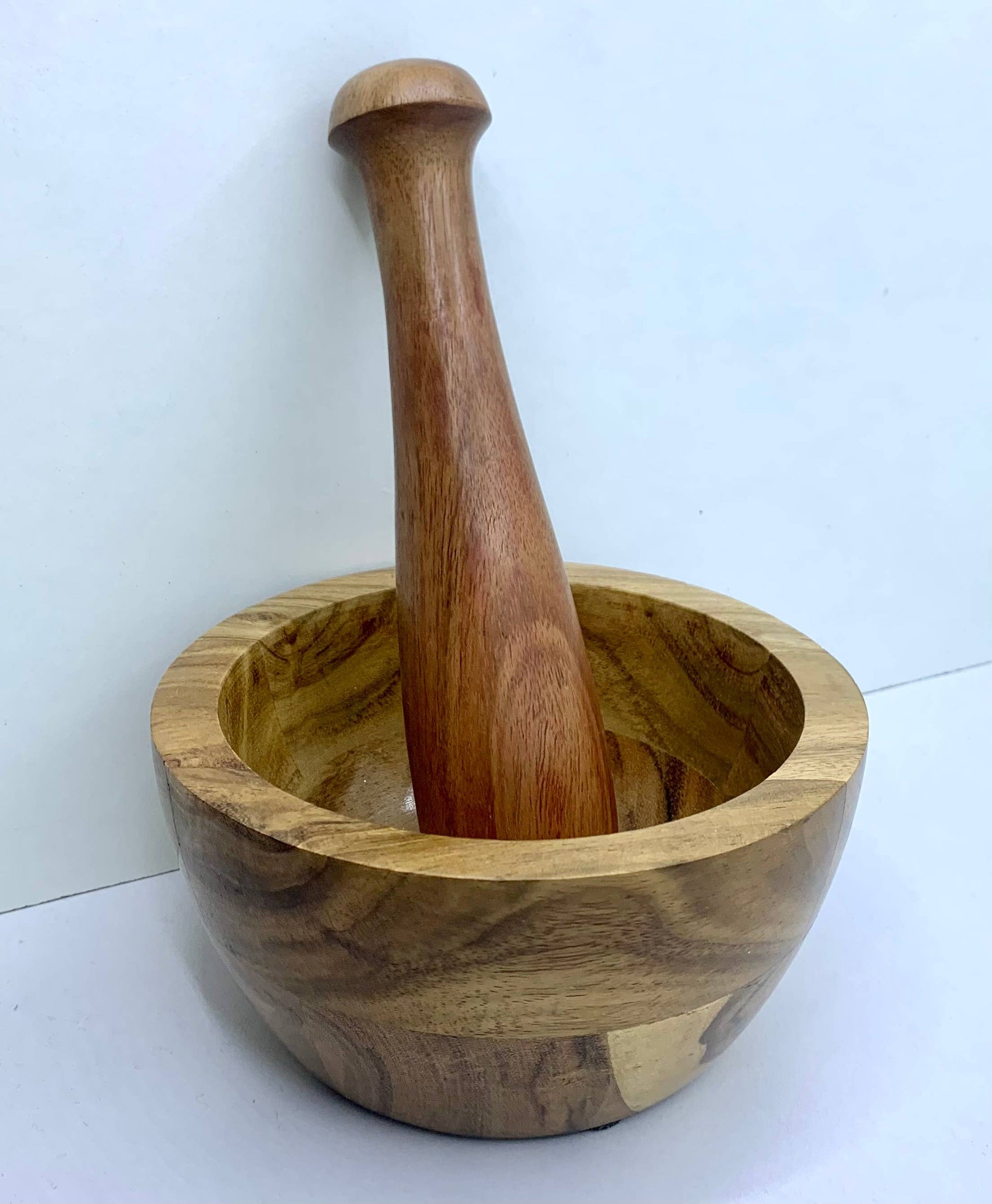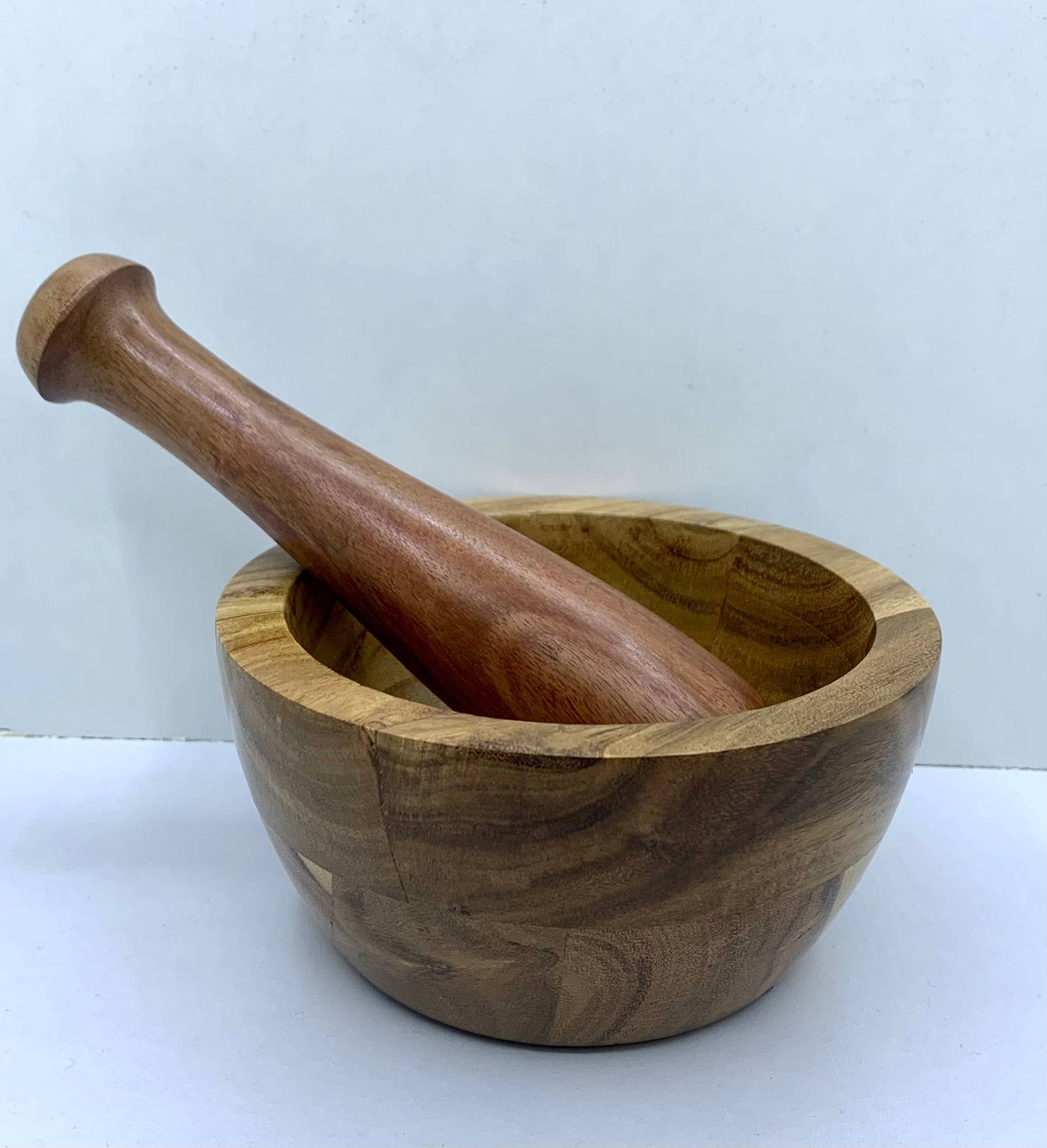Bring a touch of rustic charm and practical function to your kitchen with this Natural Acacia Wood Grinder Bowl. Perfect for preparing sauces, dips, and dressings, its ergonomic round design and compact size make it both functional and decorative on your table. The pestle’s rounded knob handle allows easy grinding to a minced or powdered consistency, combining traditional craftsmanship with everyday usability.