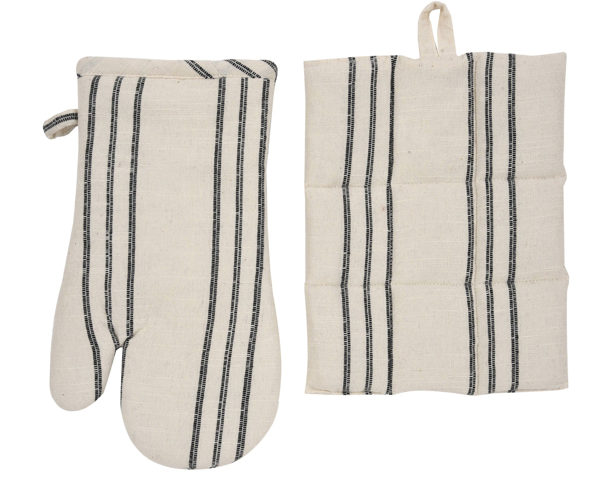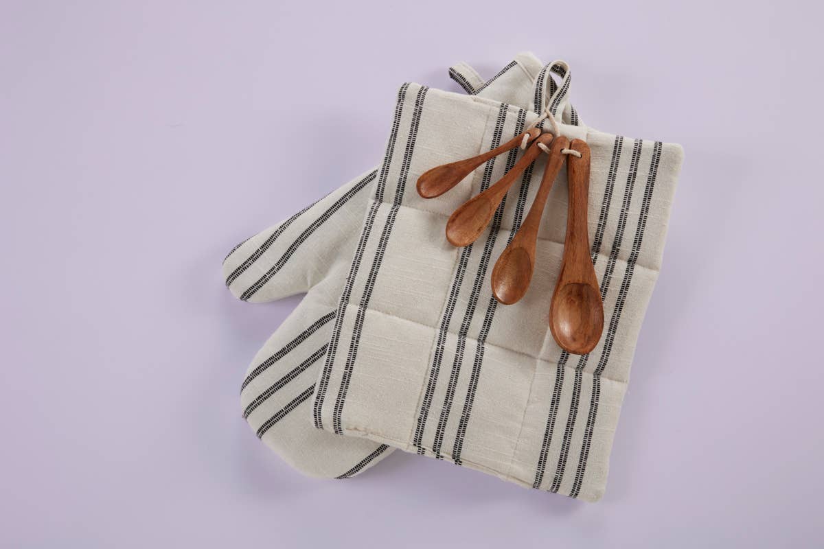 Includes cotton oven mitt, potholder, and 4 small wooden spoons