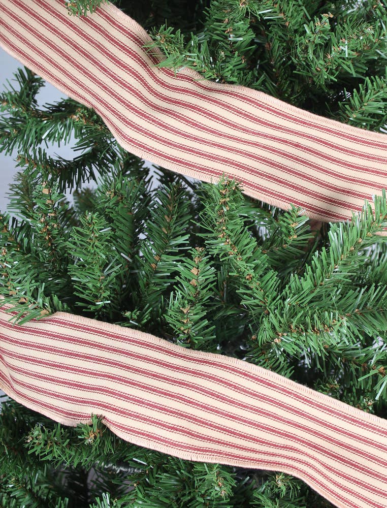 Add a touch of rustic charm to your home with this 3" x 120" fabric ribbon in classic YorkTck Barn Red ticking stripes. The alternating red and cream stripes bring timeless farmhouse appeal, perfect for garlands, wreaths, gift wrapping, or seasonal decorating. Its sturdy woven texture and generous length make it ideal for layered, textured projects that feel both festive and effortlessly homey.