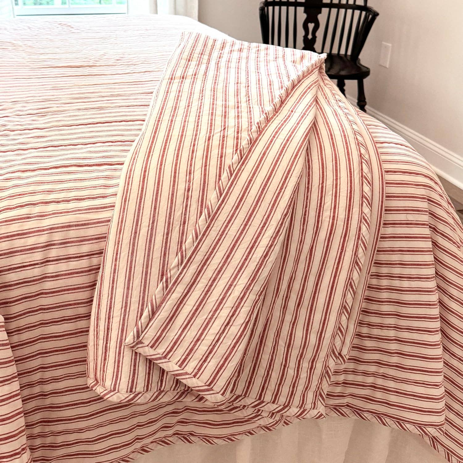 Bring classic farmhouse warmth and holiday cheer to your bedroom with the Timeless Ticking Red Queen Quilt. Its traditional red ticking pattern evokes early American charm and adds a festive touch during the Christmas season. Soft, durable, and generously sized, this quilt is perfect for layering over your bed, creating a cozy, inviting space for winter nights and holiday mornings.